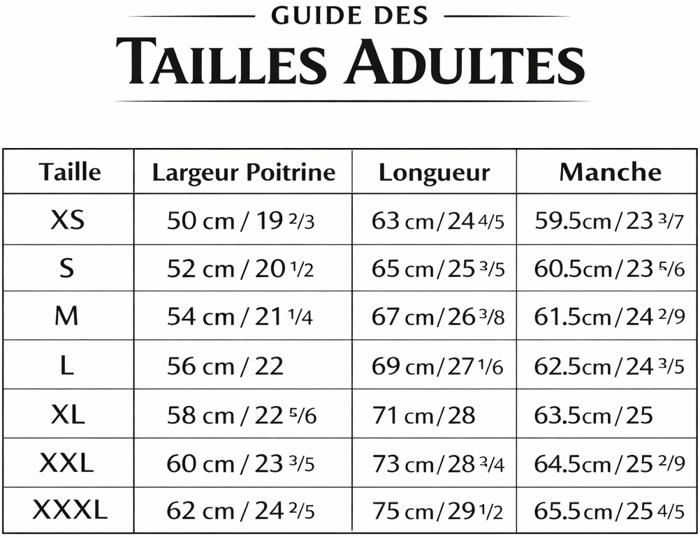 - Unisexe & inclusif : tailles du XS au XXXL, adaptées à toutes les morphologies.